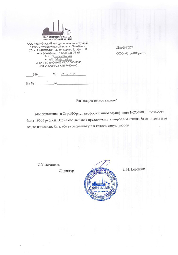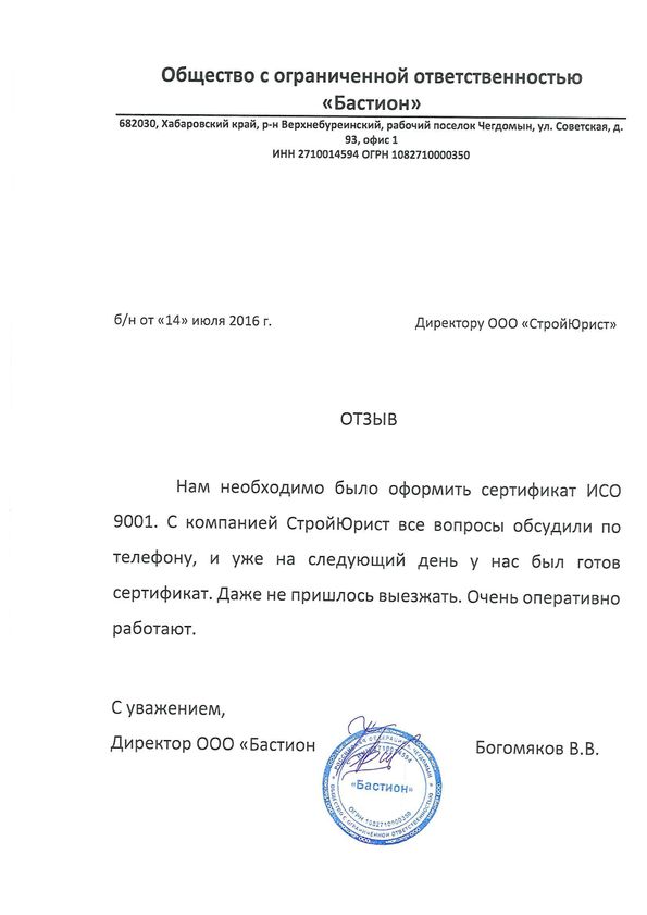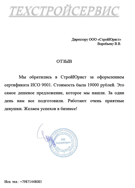 Отзывы клиентов "СтройЮрист" по ISO в Салавате