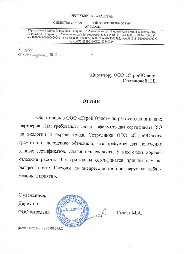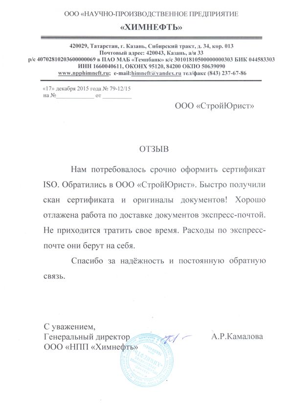 Отзывы клиентов "СтройЮрист" по ISO в Салавате