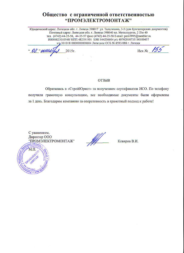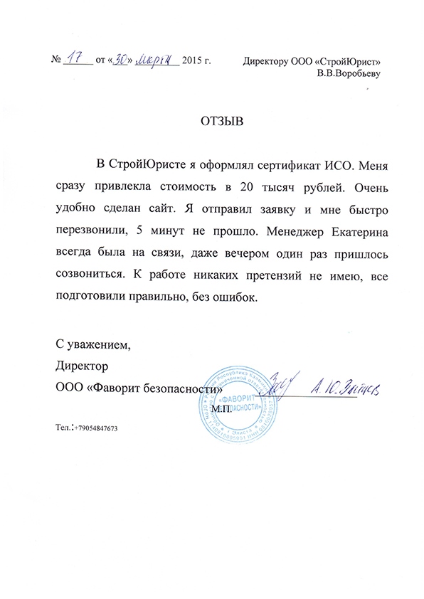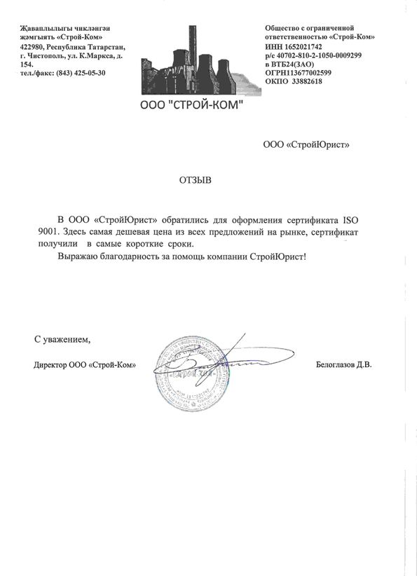 Отзывы клиентов "СтройЮрист" по ISO в Салавате