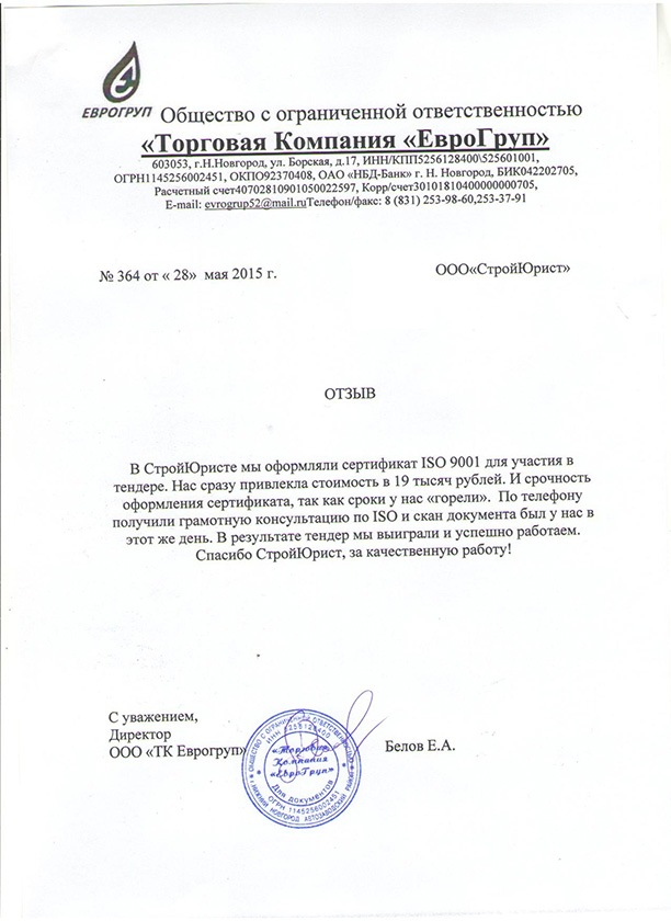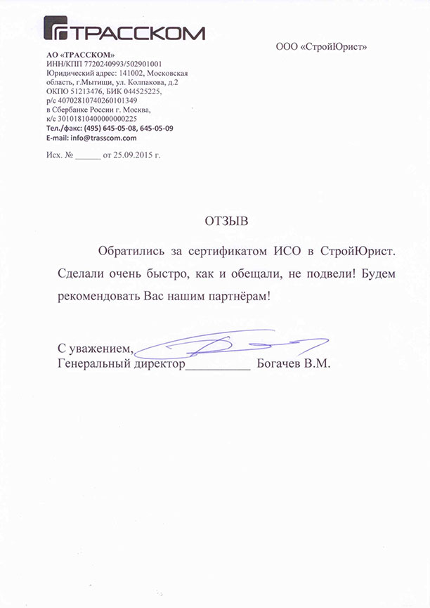 Отзывы клиентов "СтройЮрист" по ISO в Салавате