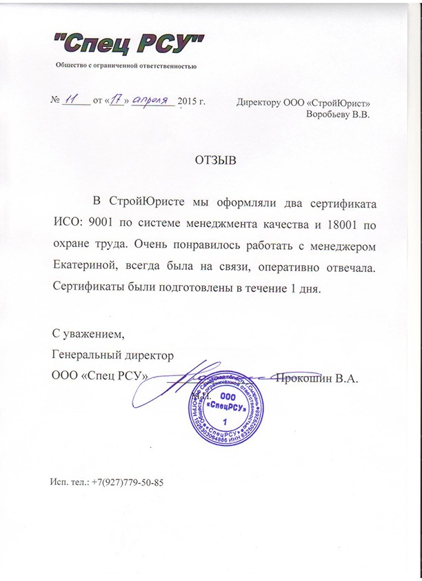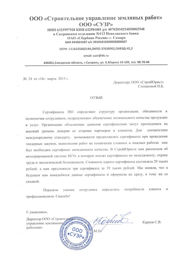 Отзывы клиентов "СтройЮрист" по ISO в Салавате