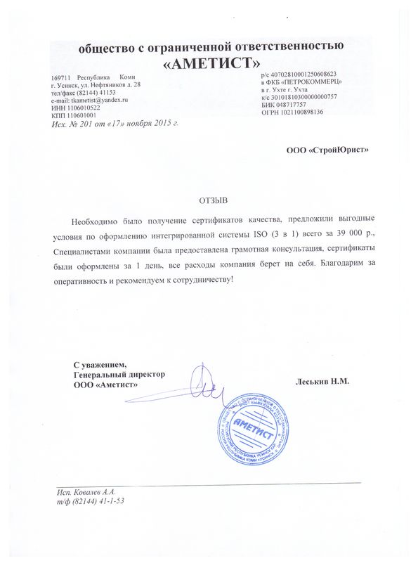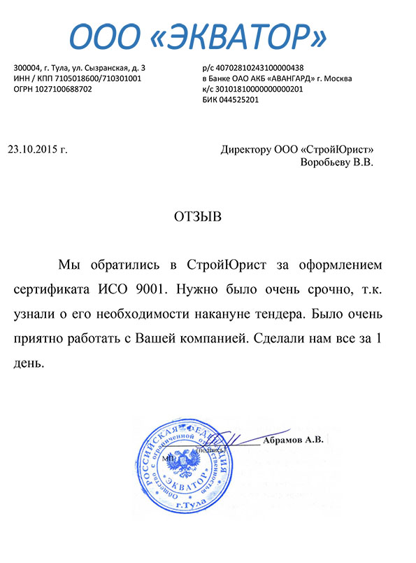 Отзывы клиентов "СтройЮрист" по ISO в Салавате