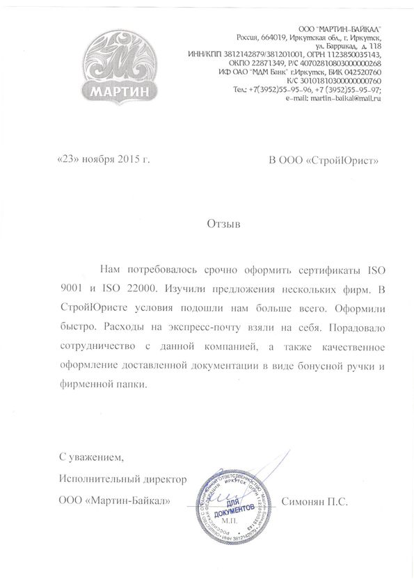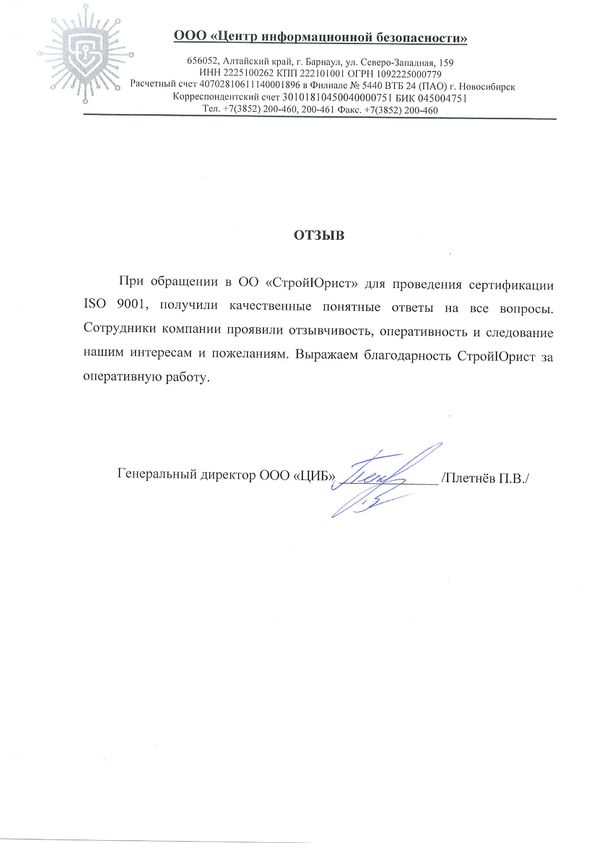 Отзывы клиентов "СтройЮрист" по ISO в Салавате