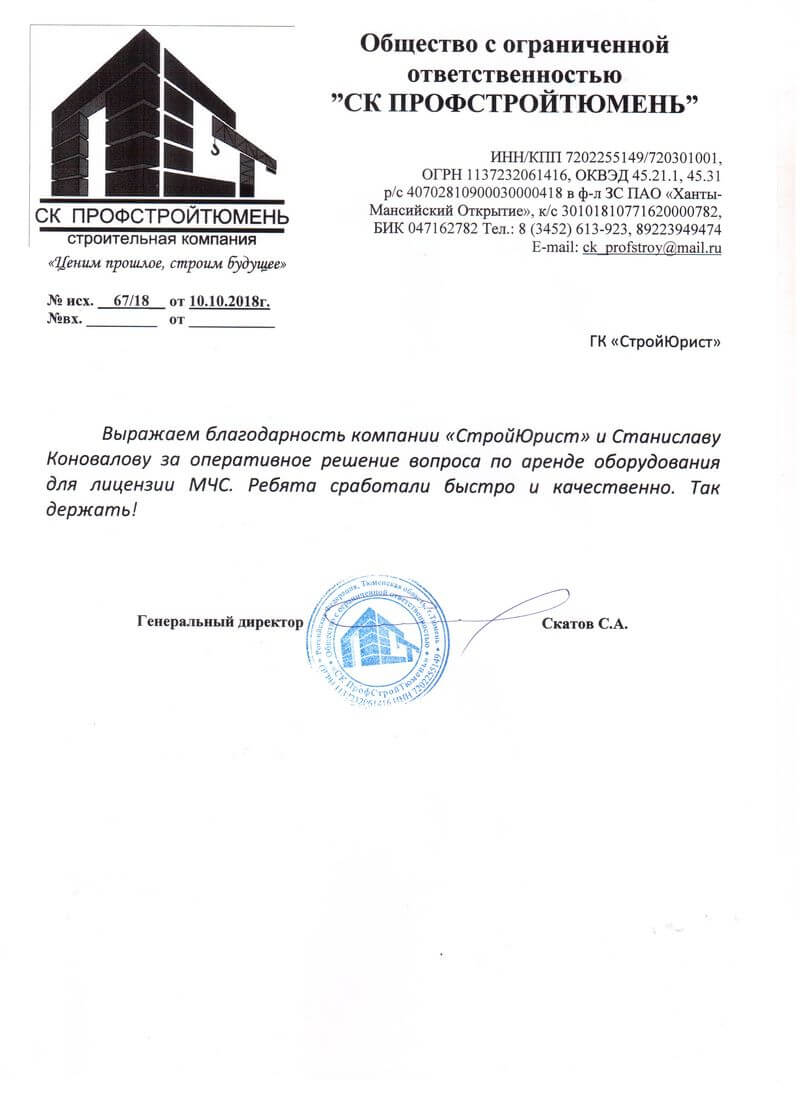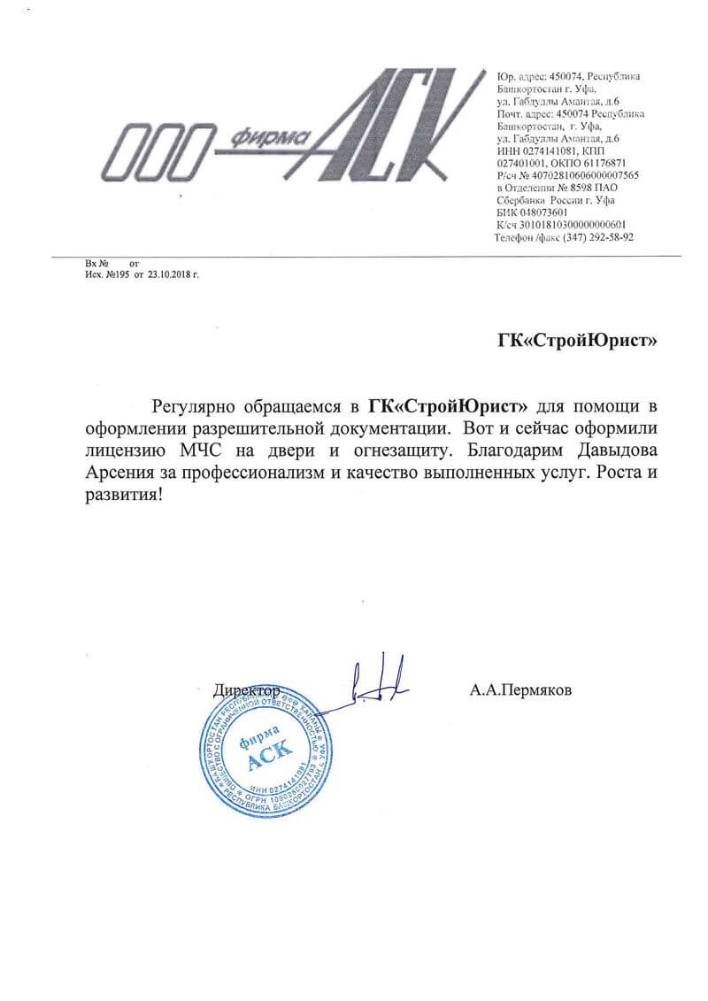 Отзывы клиентов "СтройЮрист" по лицензированию МЧС в Салавате