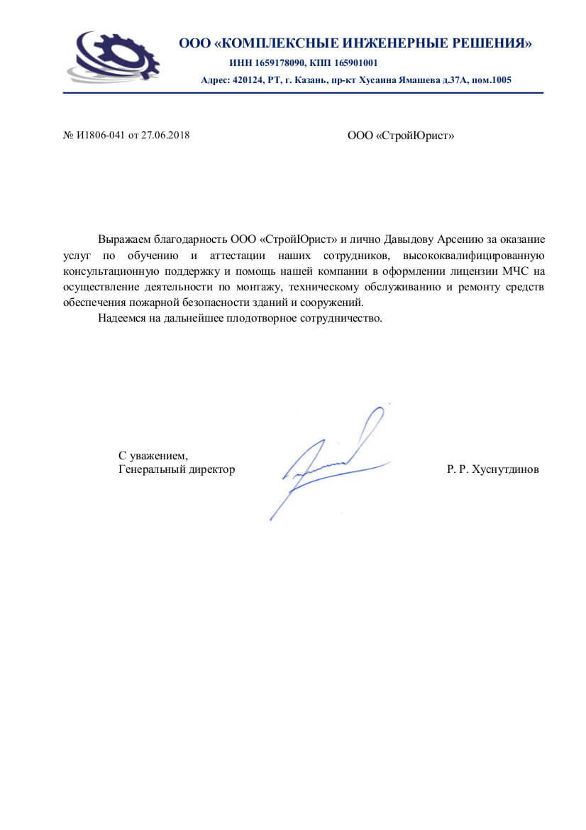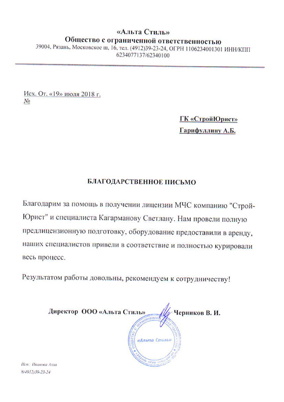 Отзывы клиентов "СтройЮрист" по лицензированию МЧС в Салавате