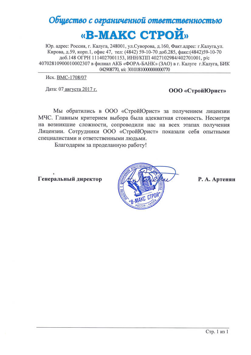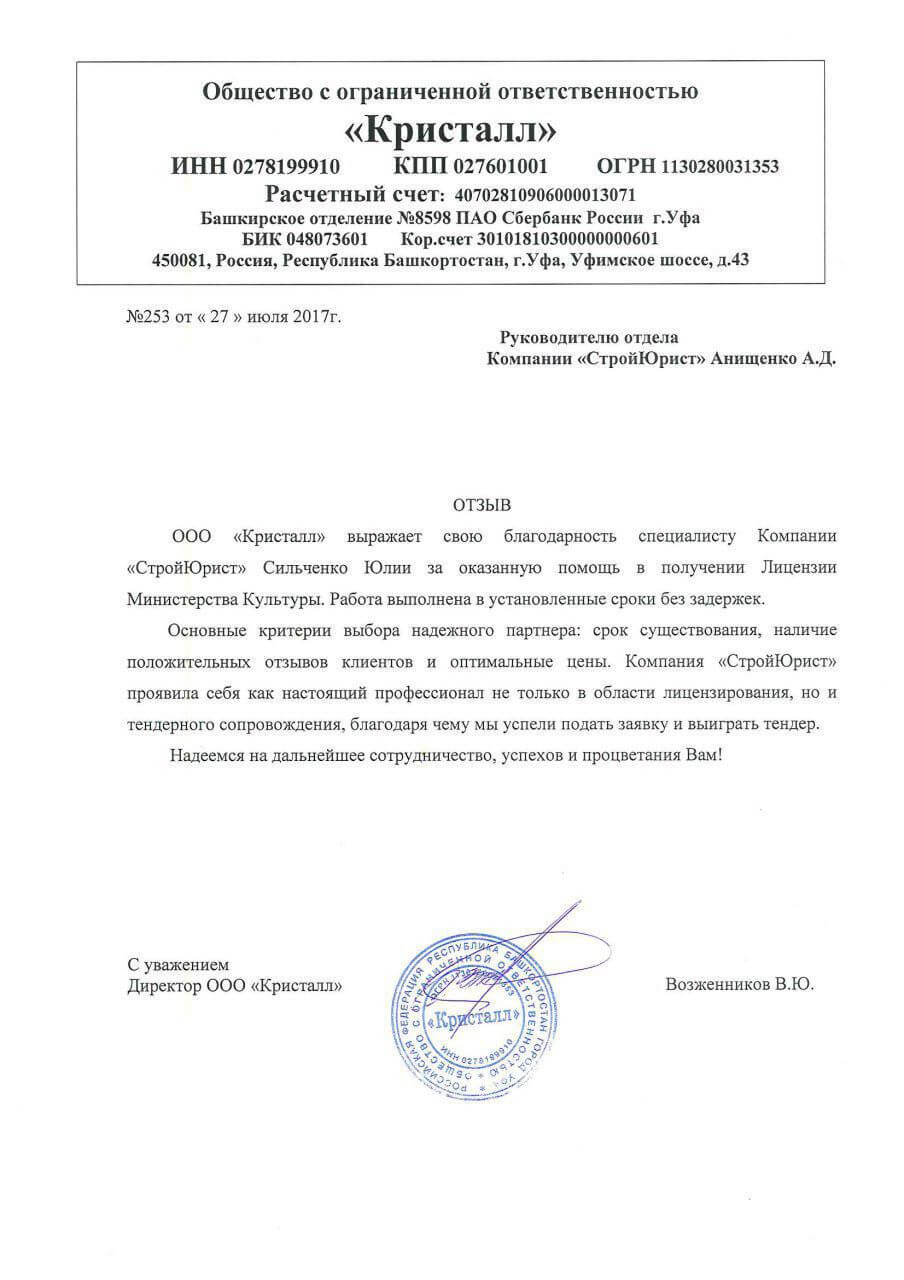 Отзывы клиентов "СтройЮрист" по лицензированию МЧС в Салавате