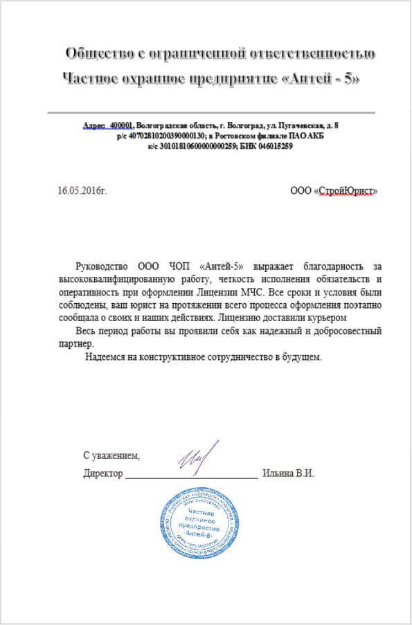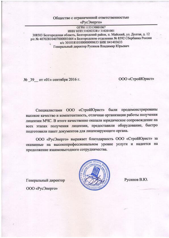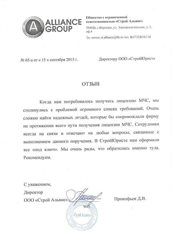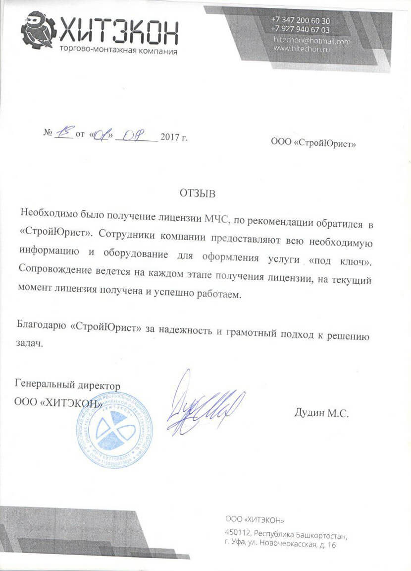 Отзывы клиентов "СтройЮрист" по лицензированию МЧС в Салавате
