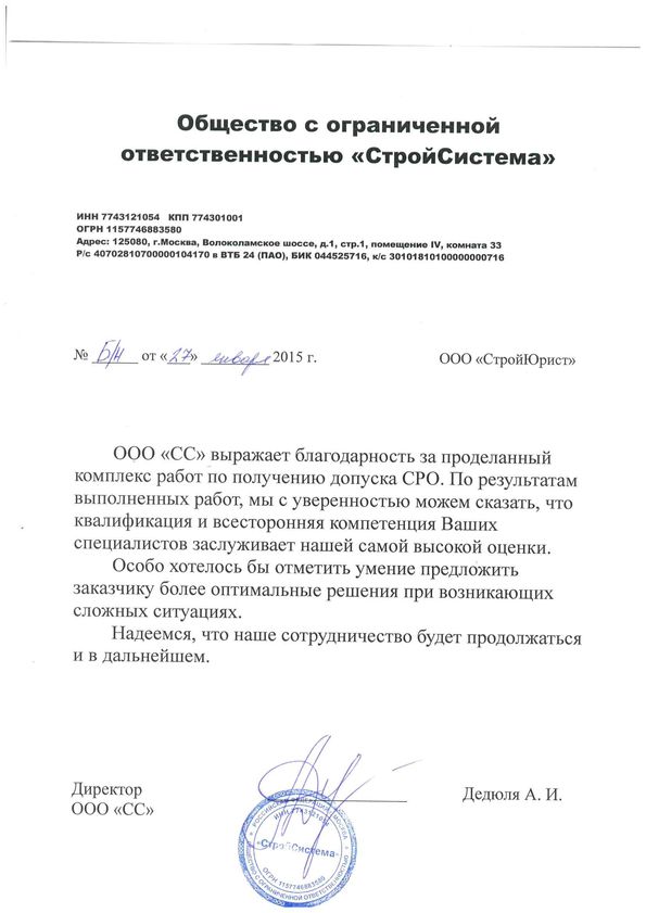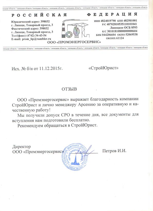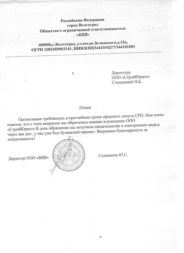 Отзывы клиентов "СтройЮрист" по вступлению в СРО в Салавате