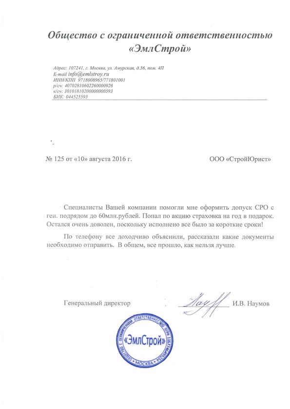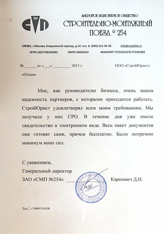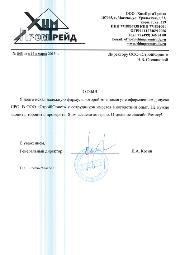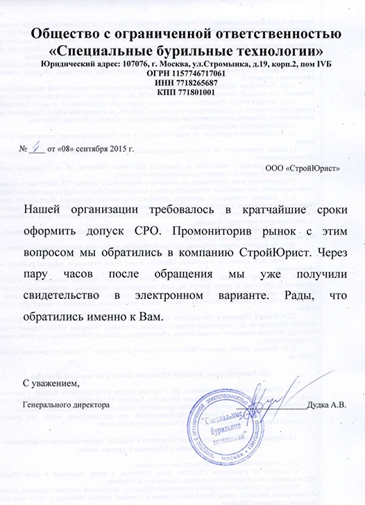 Отзывы клиентов "СтройЮрист" по вступлению в СРО в Салавате