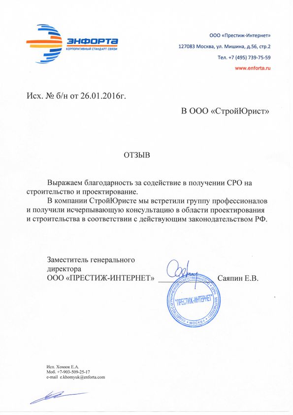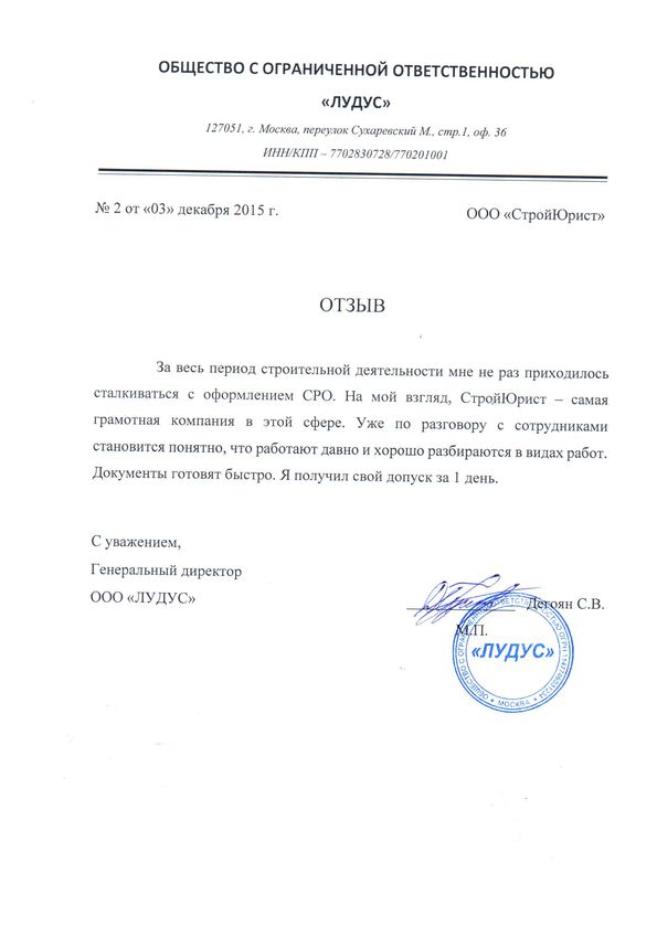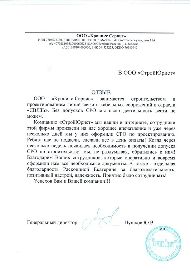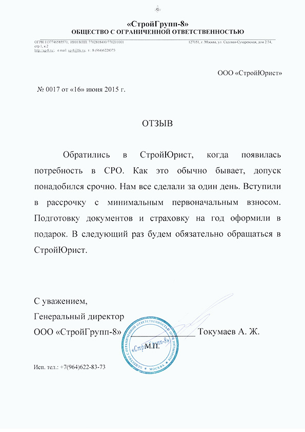 Отзывы клиентов "СтройЮрист" по вступлению в СРО в Салавате