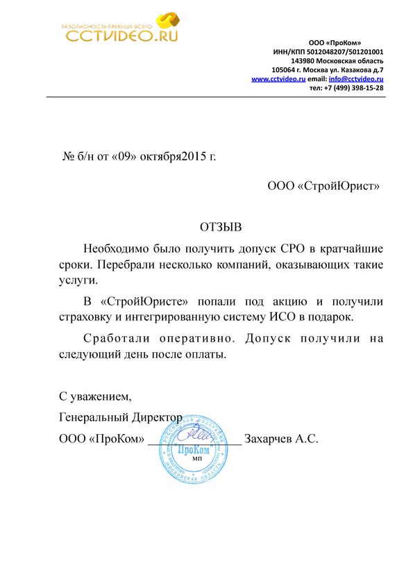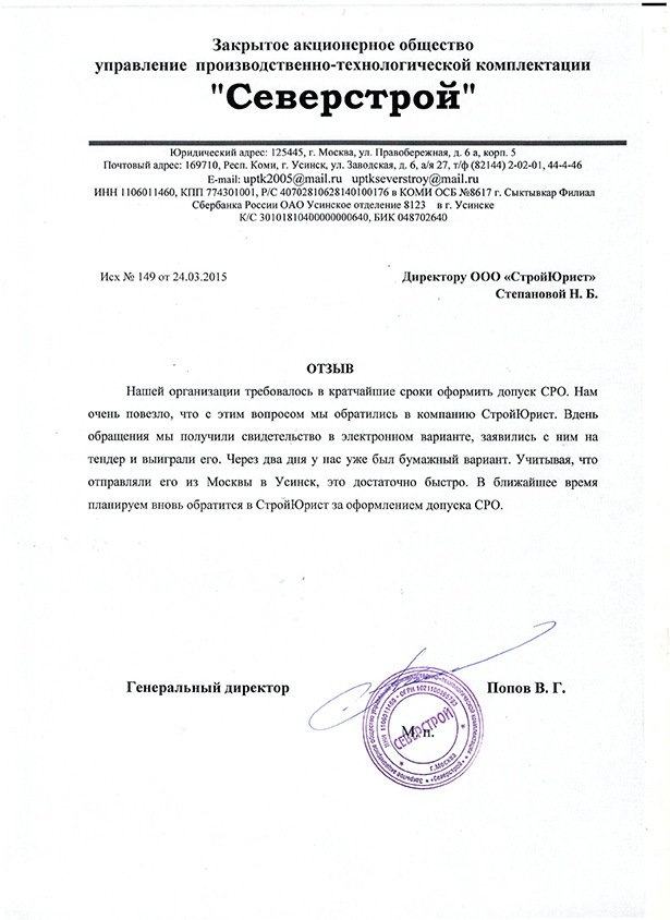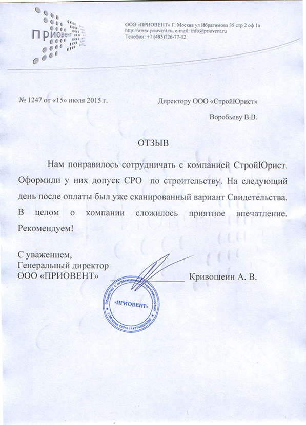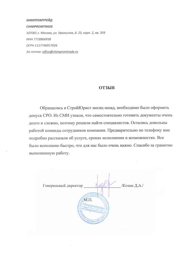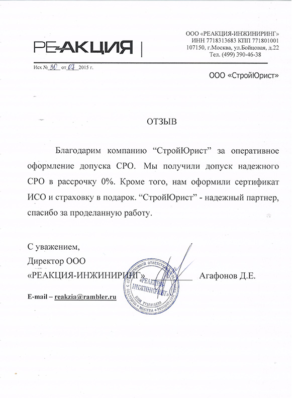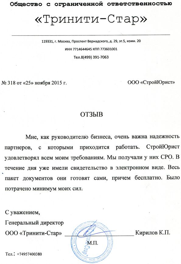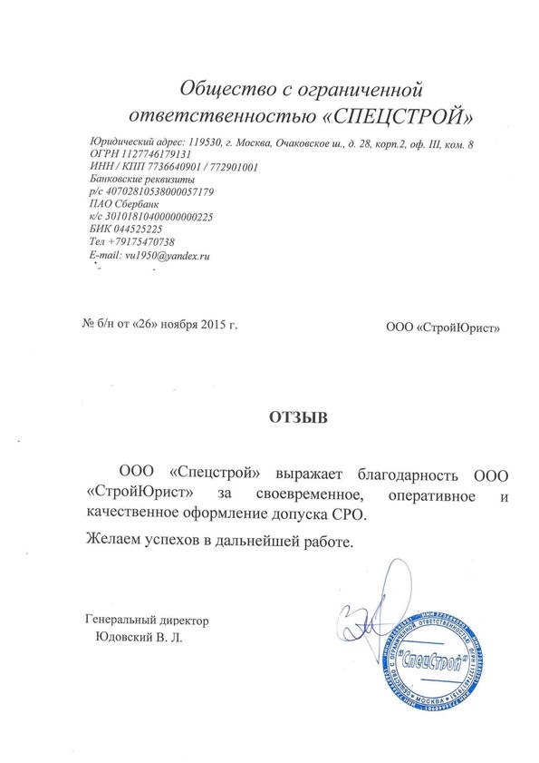Отзывы клиентов "СтройЮрист" по вступлению в СРО в Салавате