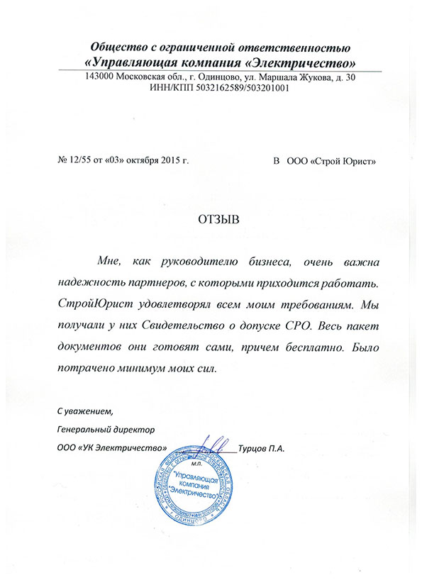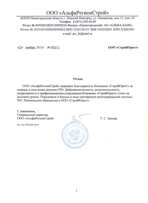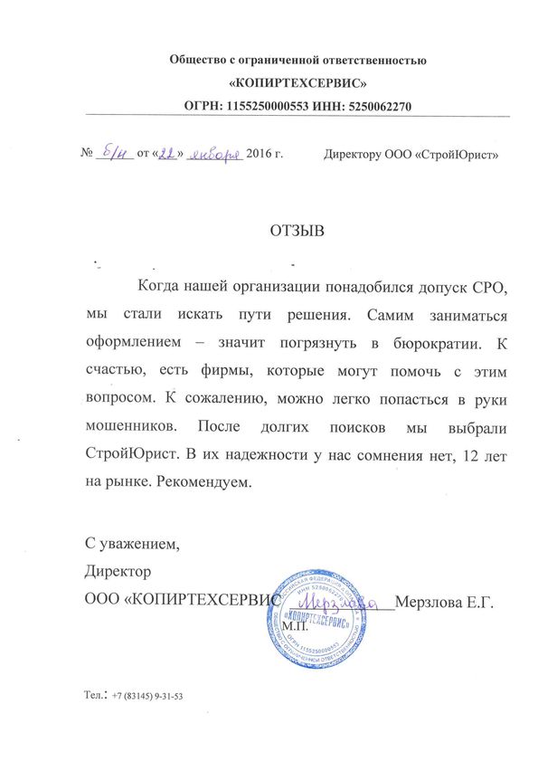 Отзывы клиентов "СтройЮрист" по вступлению в СРО в Салавате