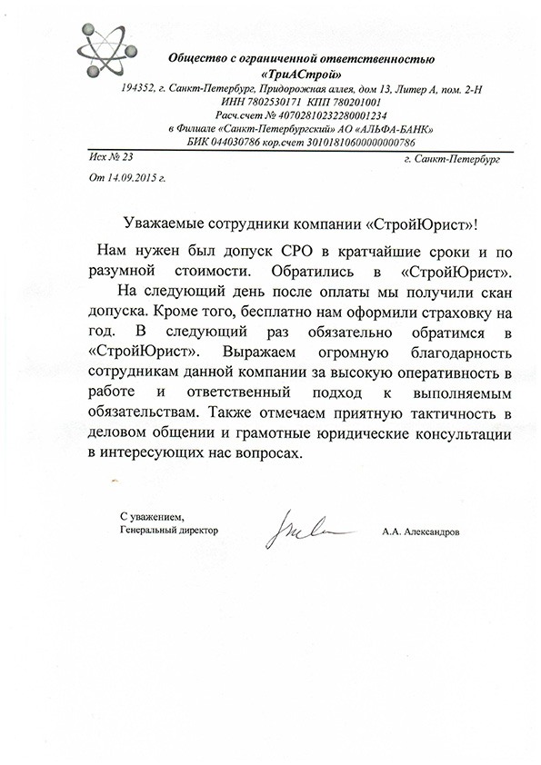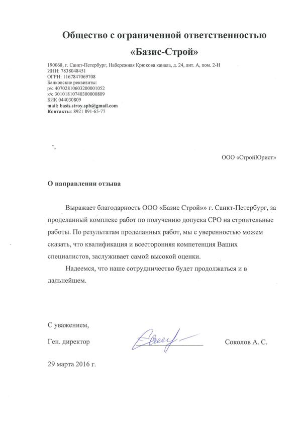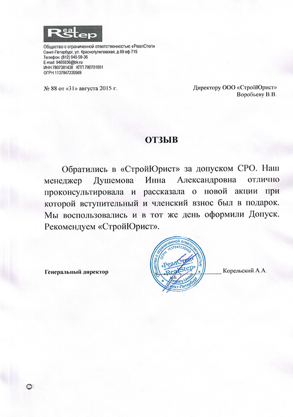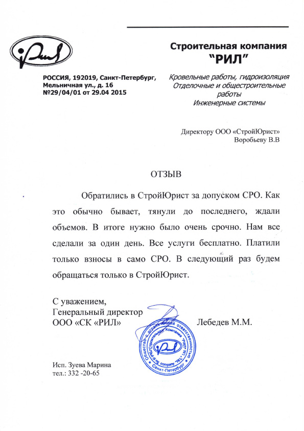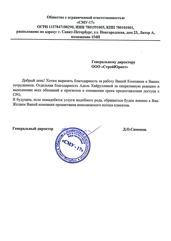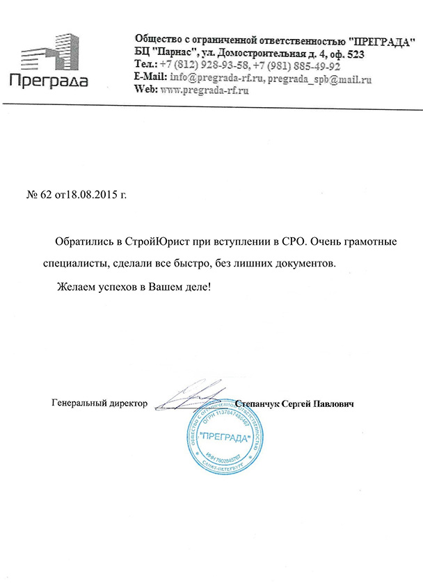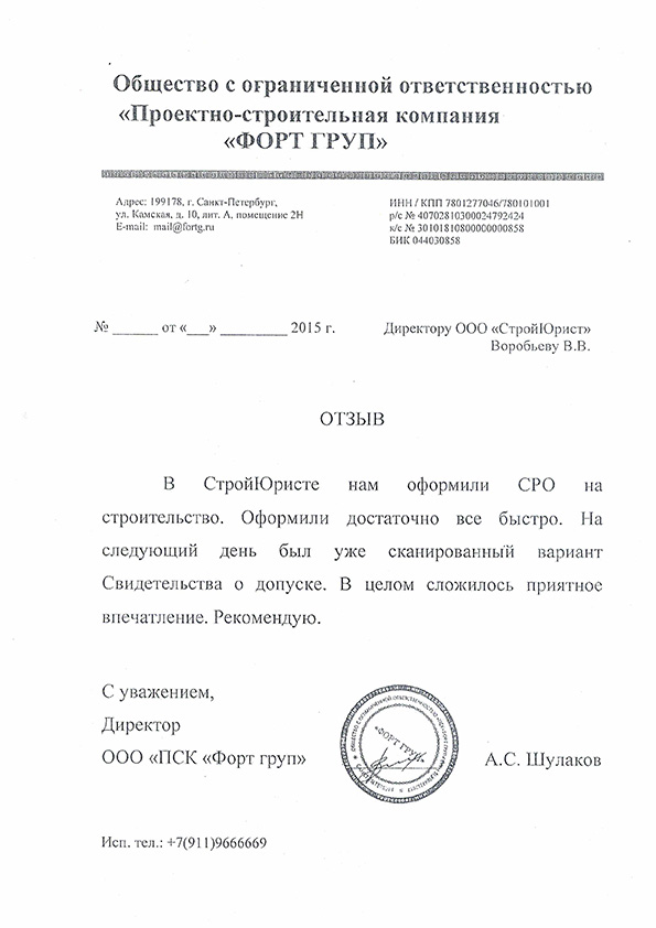 Отзывы клиентов "СтройЮрист" по вступлению в СРО в Салавате