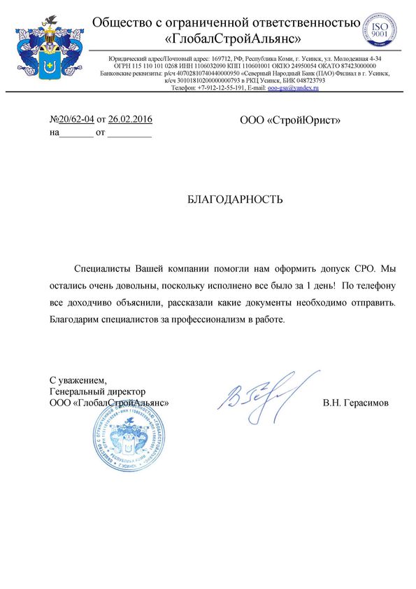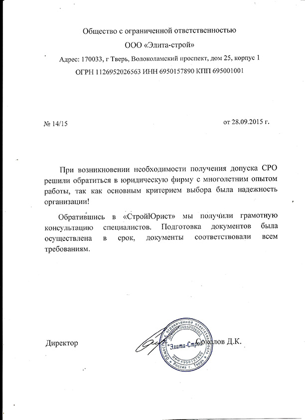 Отзывы клиентов "СтройЮрист" по вступлению в СРО в Салавате