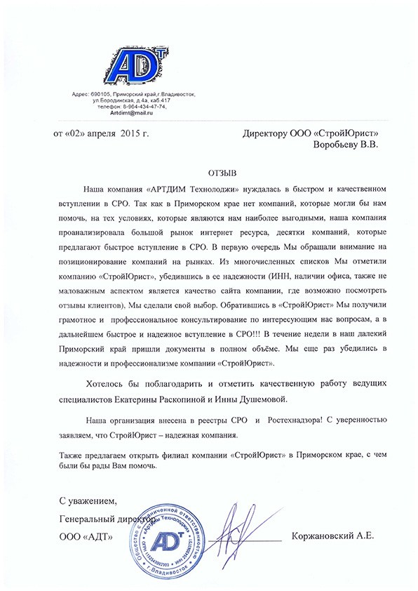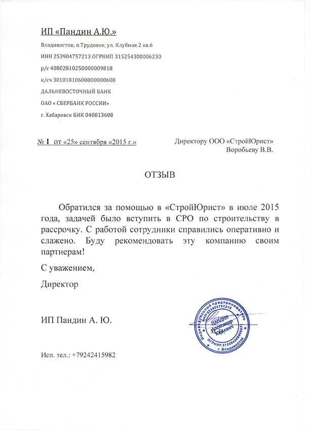 Отзывы клиентов "СтройЮрист" по вступлению в СРО в Салавате