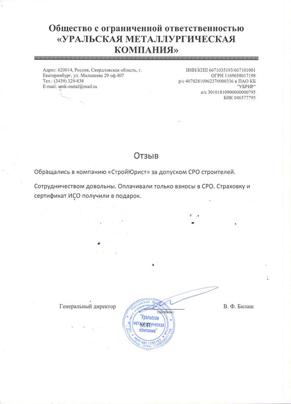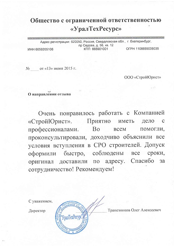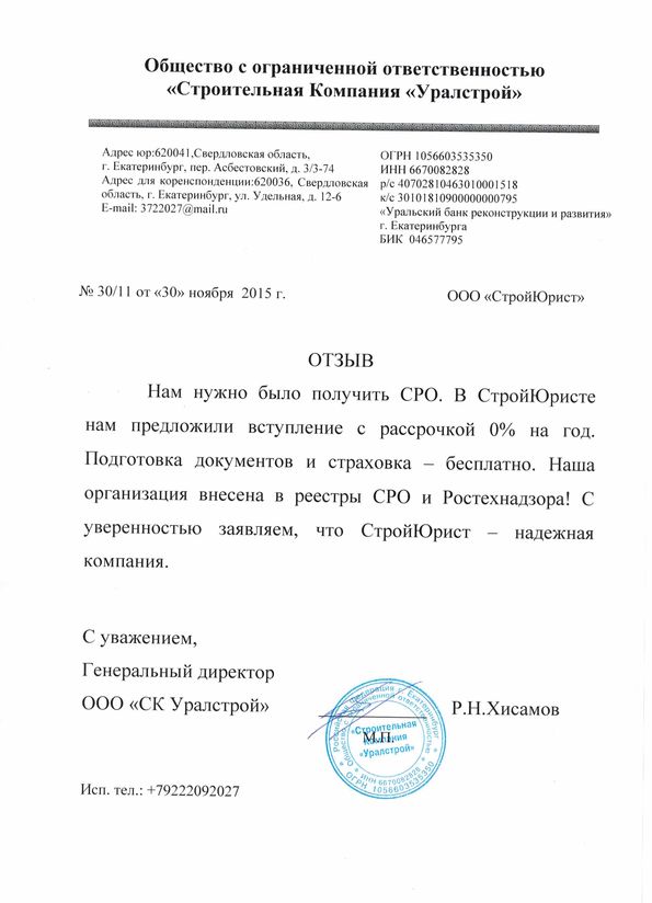 Отзывы клиентов "СтройЮрист" по вступлению в СРО в Салавате