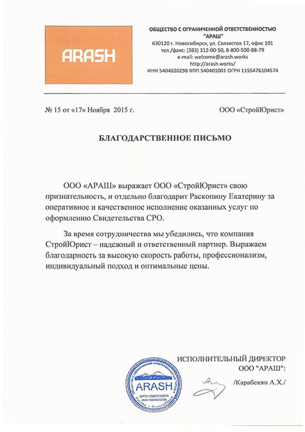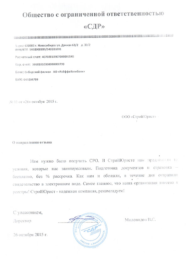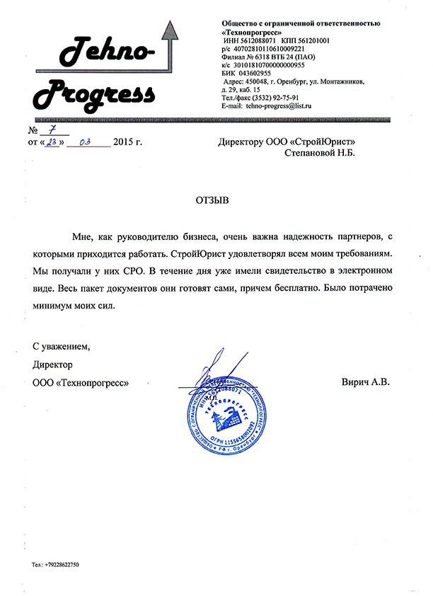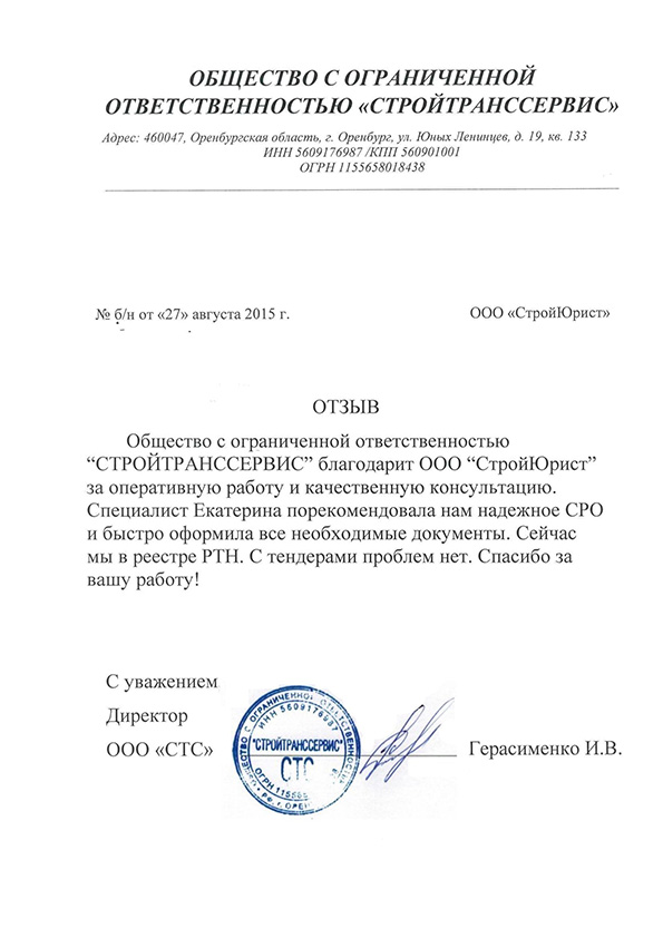 Отзывы клиентов "СтройЮрист" по вступлению в СРО в Салавате