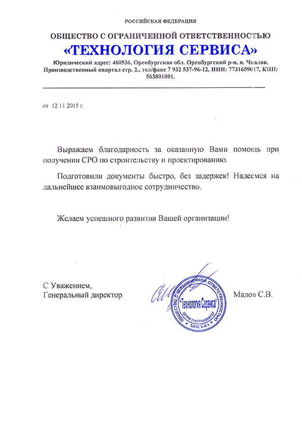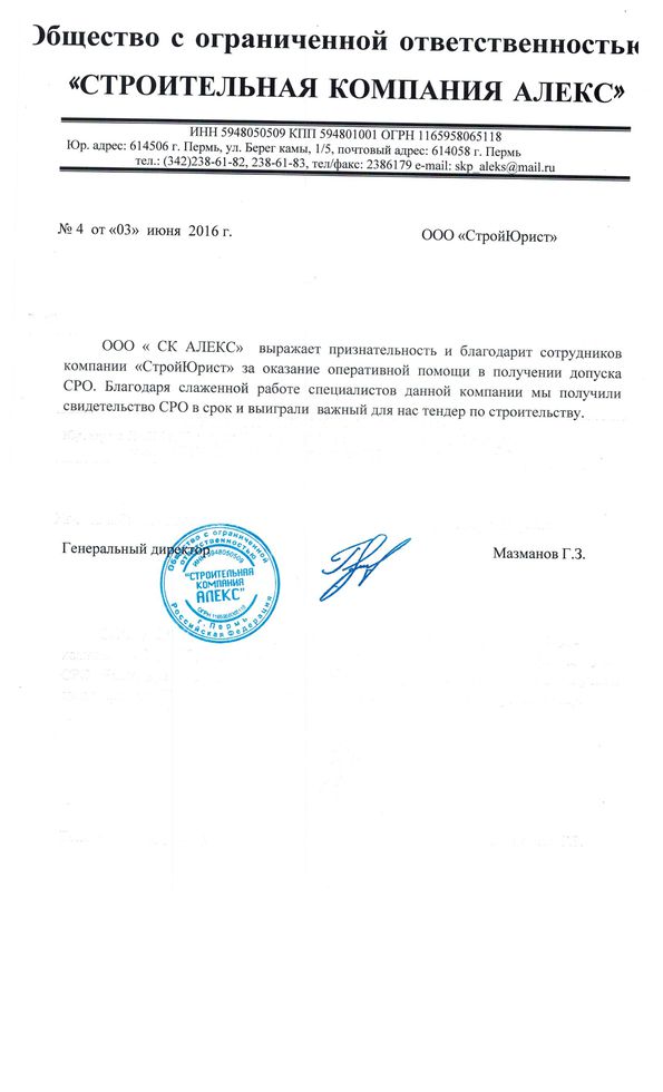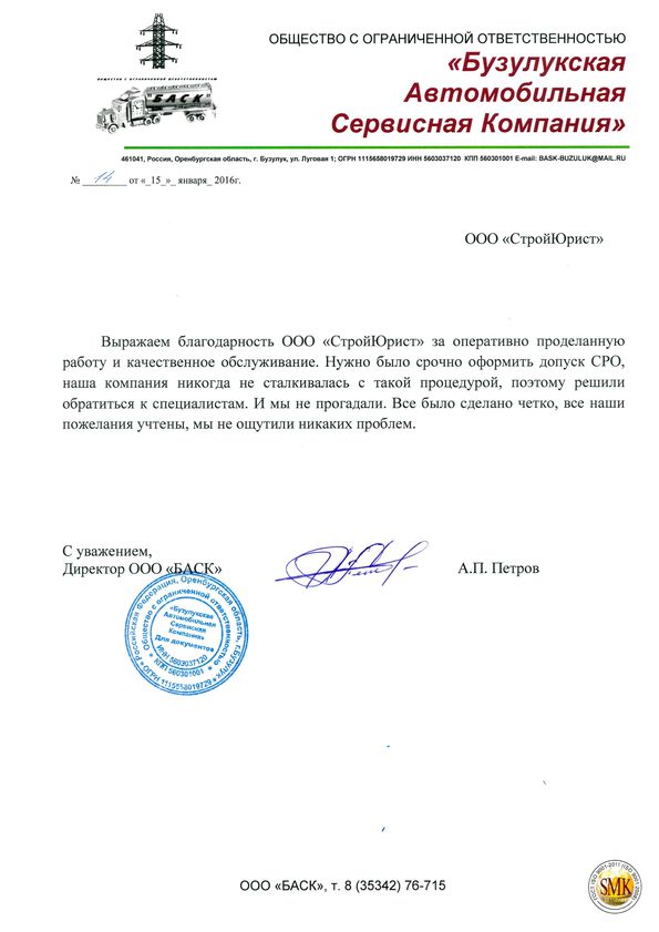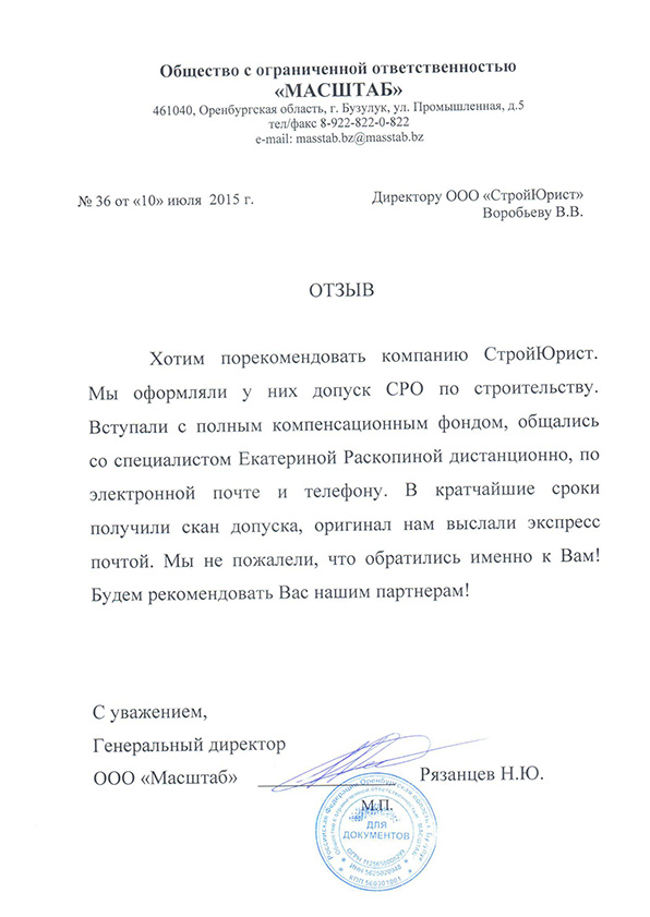 Отзывы клиентов "СтройЮрист" по вступлению в СРО в Салавате
