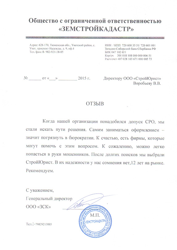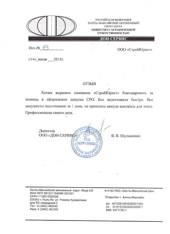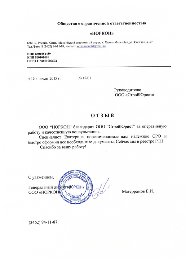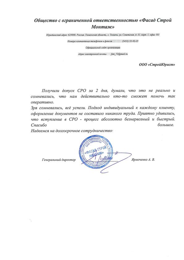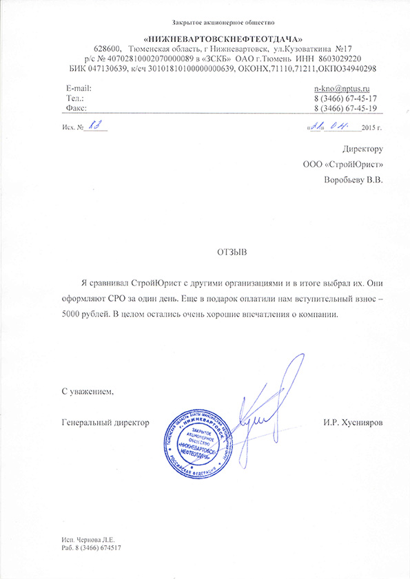 Отзывы клиентов "СтройЮрист" по вступлению в СРО в Салавате