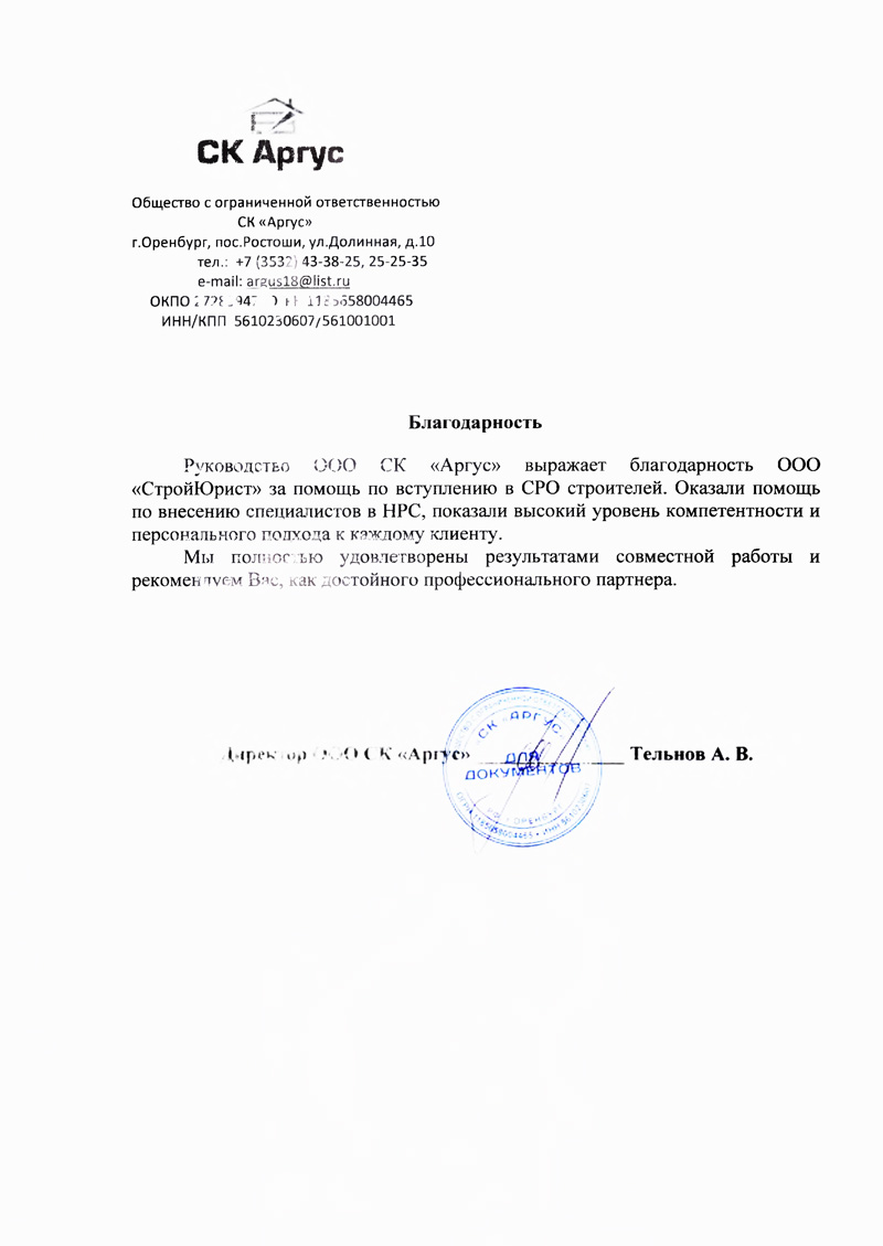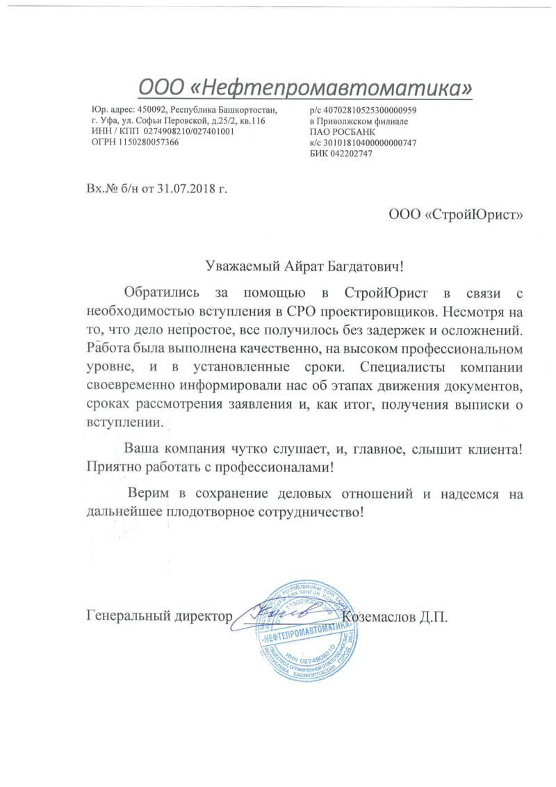 Отзывы клиентов "СтройЮрист" по вступлению в СРО в Салавате