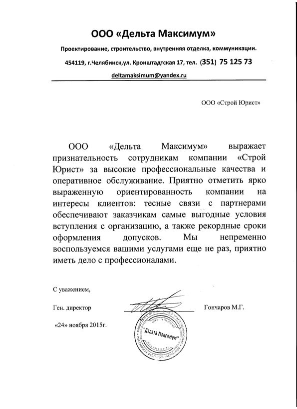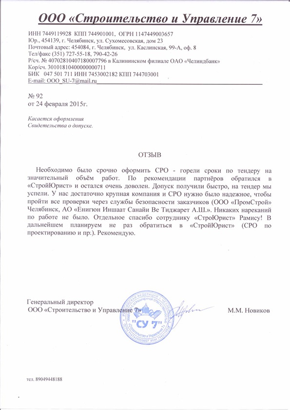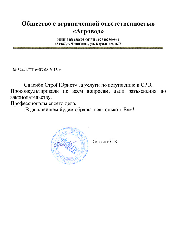 Отзывы клиентов "СтройЮрист" по вступлению в СРО в Салавате